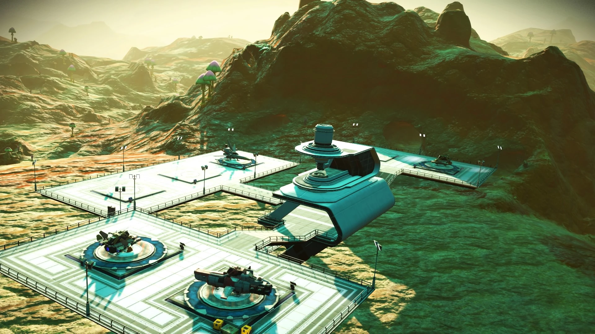 Торговый пункт представляет из себя небольшую постройку, имеющую главное здание и 7 посадочных платформ, на которые могут садиться как игрок, так и НИПы.